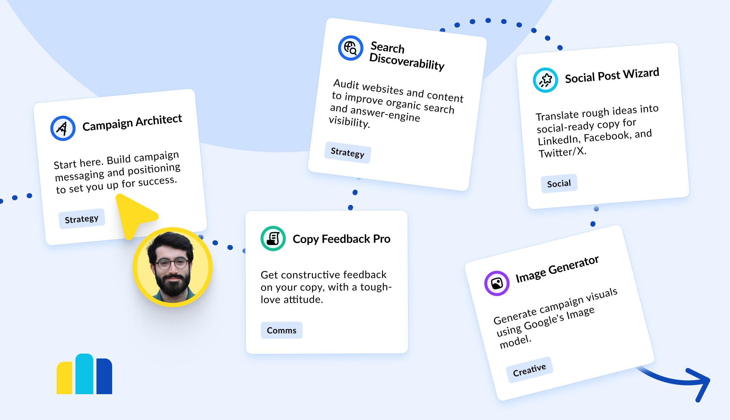 Generic AI tools often require heavy prompting—reinventing the wheel in each new chat session. They also lack the domain-specific nuances required for professional marketing. Agent Cloud solves this with a curated suite of 10 specialized agents engineered for specific workflows, built by marketers, for marketers. These include: